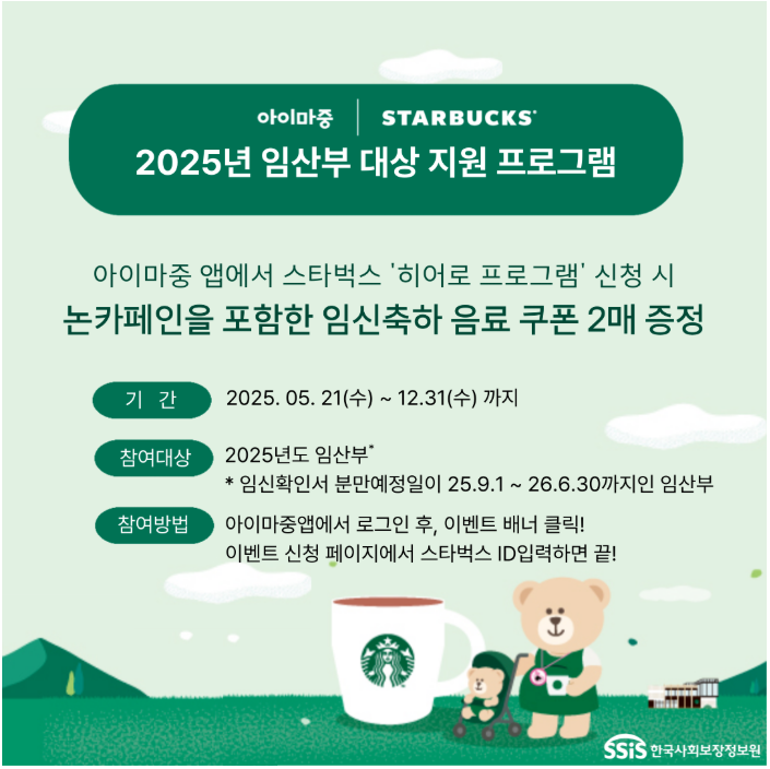 이번 협약에서 가장 주목할 점은, 임산부 맞춤형 앱 ‘아이마중’을 통해 스타벅스 음료 쿠폰을 받을 수 있다는 것입니다.