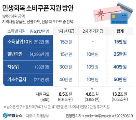 - 1차 지급: 2025년 7월 중순부터, 전 국민 대상 15만원 지급 예정